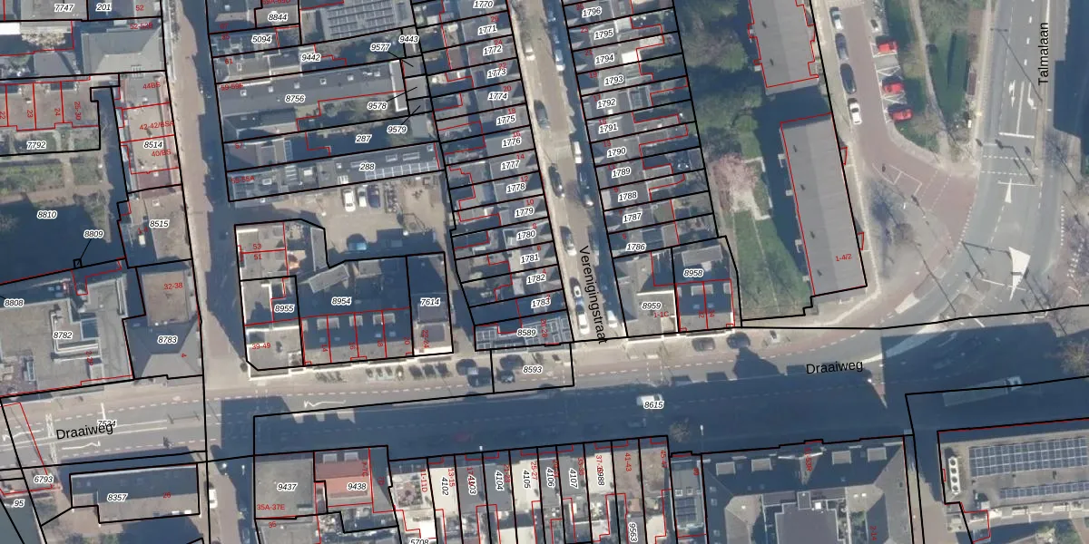 Het perceel waarop Verenigingstraat 4 staat heeft een oppervlakte van 77 m². Dit is een klein perceel. De perceeloppervlakte wordt geregistreerd door het Kadaster. Gedetailleerde informatie over de maten van dit perceel kunt u vinden in het rapport Kadastrale kaart met maatvoering van Verenigingstraat 4.