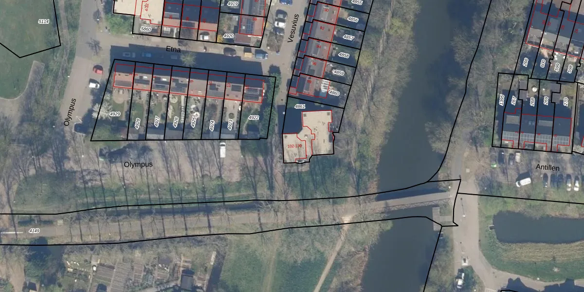 Het perceel waarop Vesuvius 114 staat heeft een oppervlakte van 360 m². Dit is een groot perceel. De perceeloppervlakte wordt geregistreerd door het Kadaster. Gedetailleerde informatie over de maten van dit perceel kunt u vinden in het rapport Kadastrale kaart met maatvoering van Vesuvius 114.