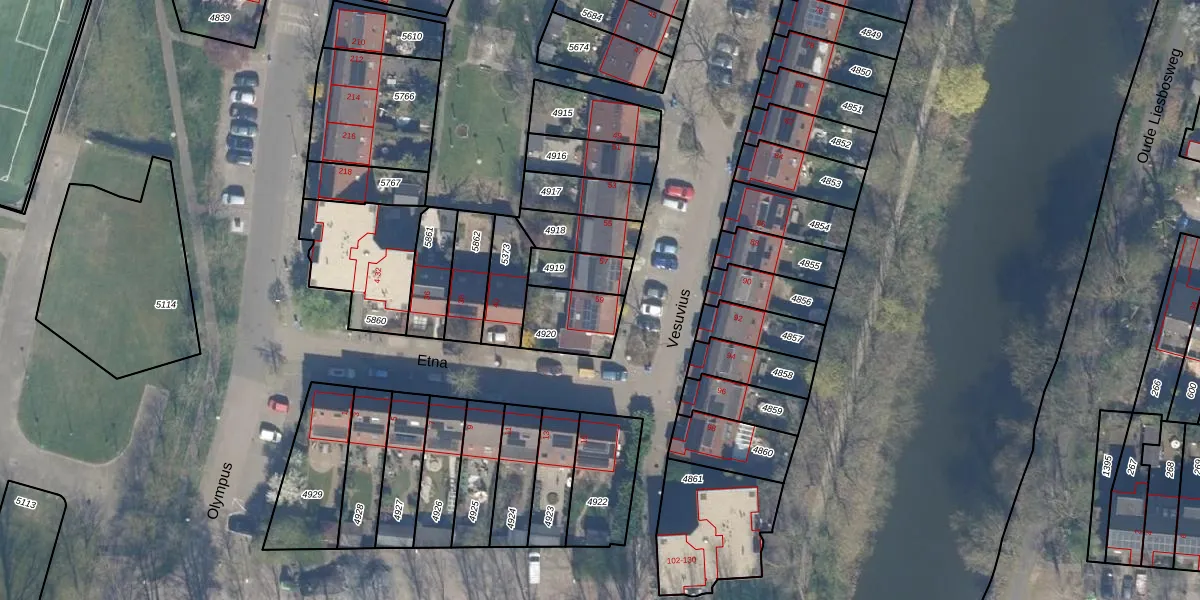 Gebruik de zoekbalk of klik op een perceel voor informatie over de adressen binnen dit perceel.