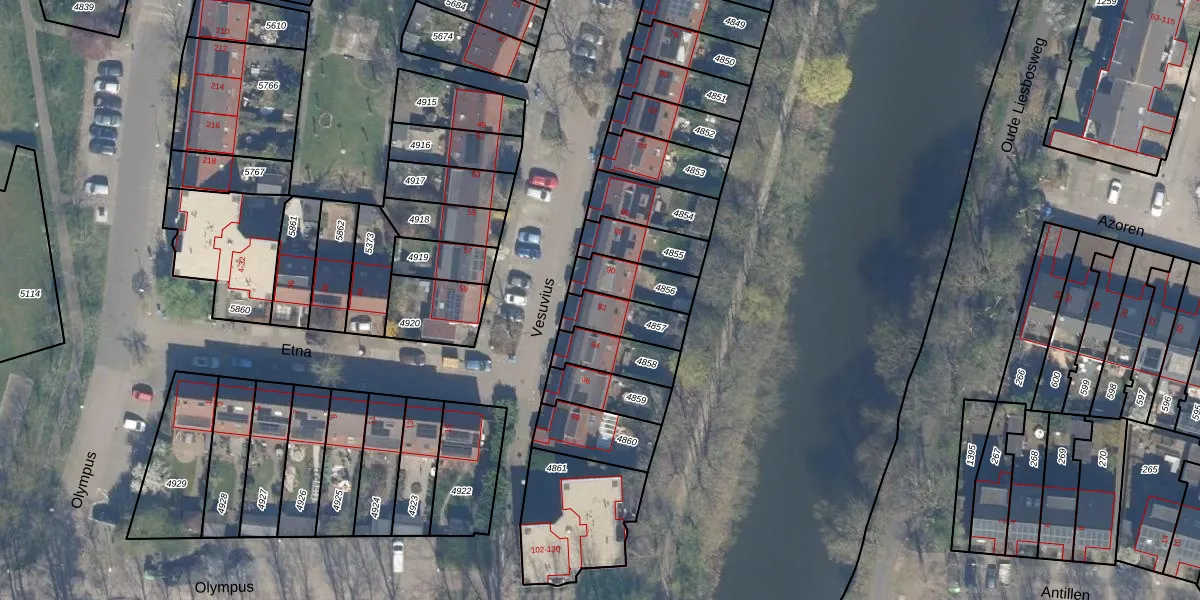 Gebruik de zoekbalk of klik op een perceel voor informatie over de adressen binnen dit perceel.