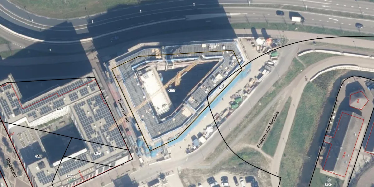 Het perceel waarop Vilniusdijk 202 staat heeft een oppervlakte van 2102 m². Dit is een zeer groot perceel. De perceeloppervlakte wordt geregistreerd door het Kadaster. Gedetailleerde informatie over de maten van dit perceel kunt u vinden in het rapport Kadastrale kaart met maatvoering van Vilniusdijk 202.
