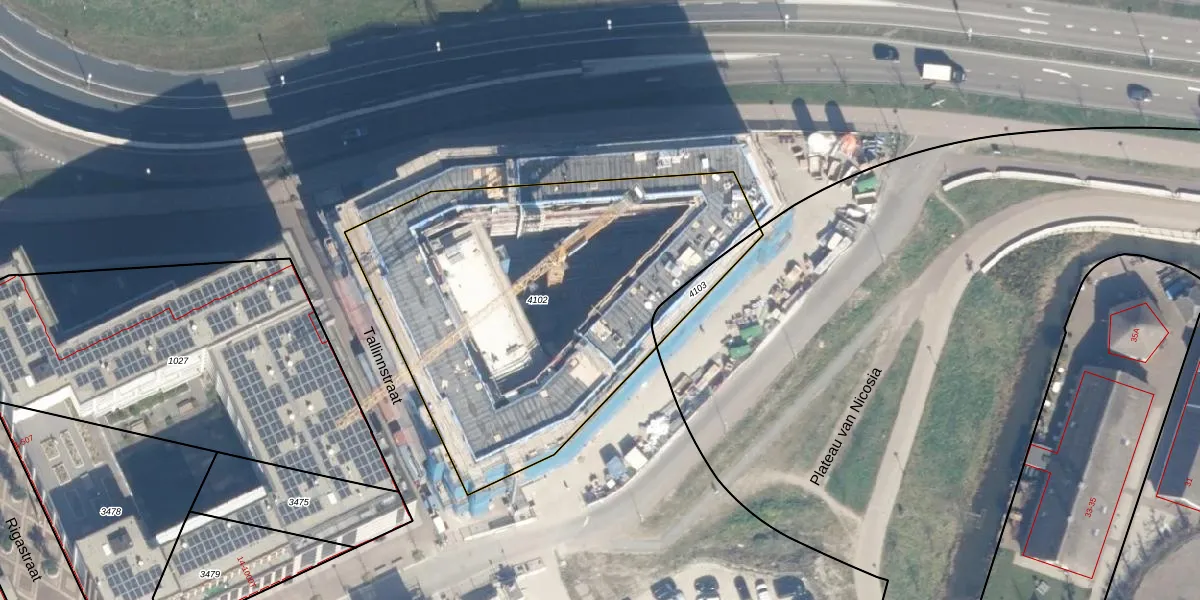 Het perceel waarop Vilniusdijk 222 staat heeft een oppervlakte van 2102 m². Dit is een zeer groot perceel. De perceeloppervlakte wordt geregistreerd door het Kadaster. Gedetailleerde informatie over de maten van dit perceel kunt u vinden in het rapport Kadastrale kaart met maatvoering van Vilniusdijk 222.