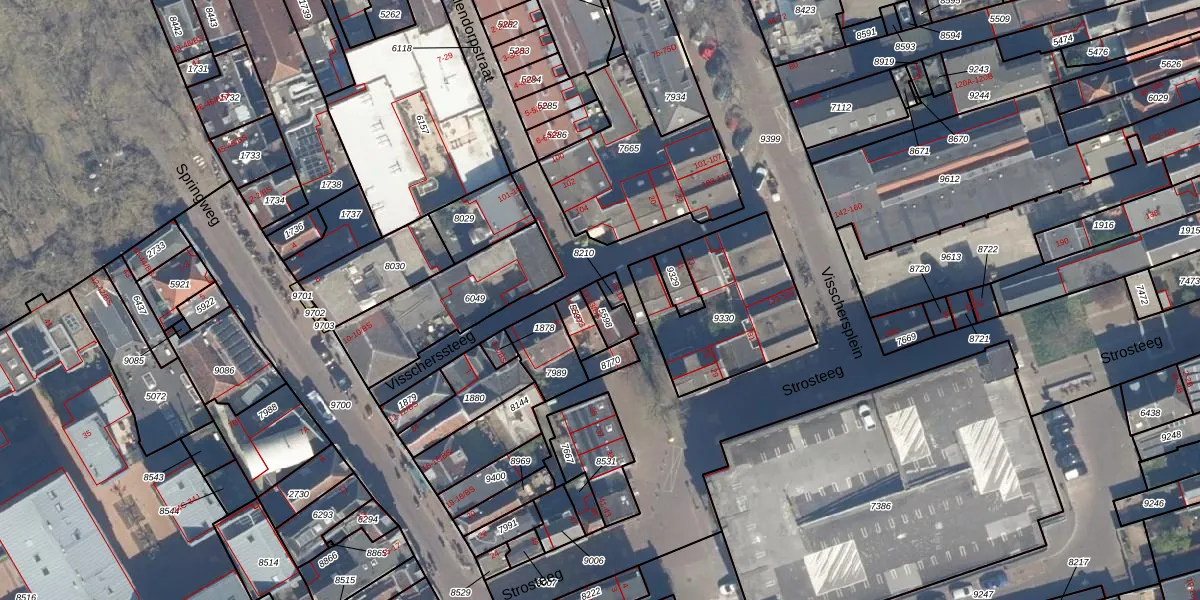 Het perceel waarop Visscherssteeg 13 staat heeft een oppervlakte van 49 m². Dit is een klein perceel. De perceeloppervlakte wordt geregistreerd door het Kadaster. Gedetailleerde informatie over de maten van dit perceel kunt u vinden in het rapport Kadastrale kaart met maatvoering van Visscherssteeg 13.
