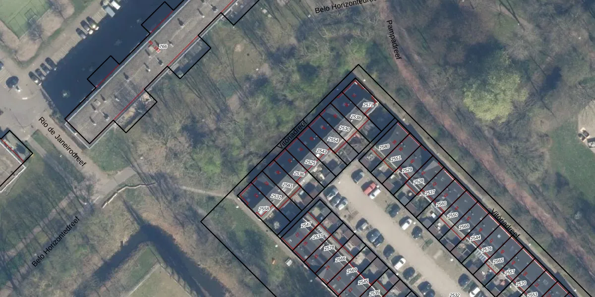 Het perceel waarop Vitóriadreef 32 staat heeft een oppervlakte van 102 m². Dit is een middelgroot perceel. De perceeloppervlakte wordt geregistreerd door het Kadaster. Gedetailleerde informatie over de maten van dit perceel kunt u vinden in het rapport Kadastrale kaart met maatvoering van Vitóriadreef 32.
