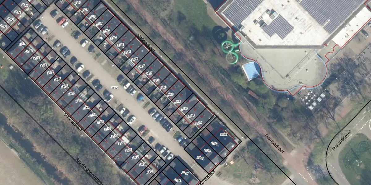 Vitóriadreef 53 is gelegen op kadastraal perceel UTT00F2542. Deze kadastrale aanduiding is uniek en wordt gebruikt door het Kadaster om eigendomsrechten en andere zakelijke rechten vast te leggen. Het perceel maakt onderdeel uit van de kadastrale gemeente Utrecht.