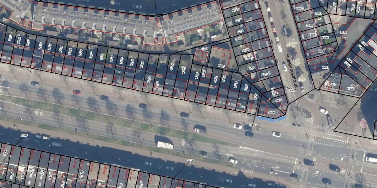 Gebruik de zoekbalk of klik op een perceel voor informatie over de adressen binnen dit perceel.