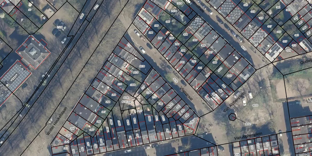 Het perceel waarop Vlietstraat 1 staat heeft een oppervlakte van 100 m². Dit is een middelgroot perceel. De perceeloppervlakte wordt geregistreerd door het Kadaster. Gedetailleerde informatie over de maten van dit perceel kunt u vinden in het rapport Kadastrale kaart met maatvoering van Vlietstraat 1.