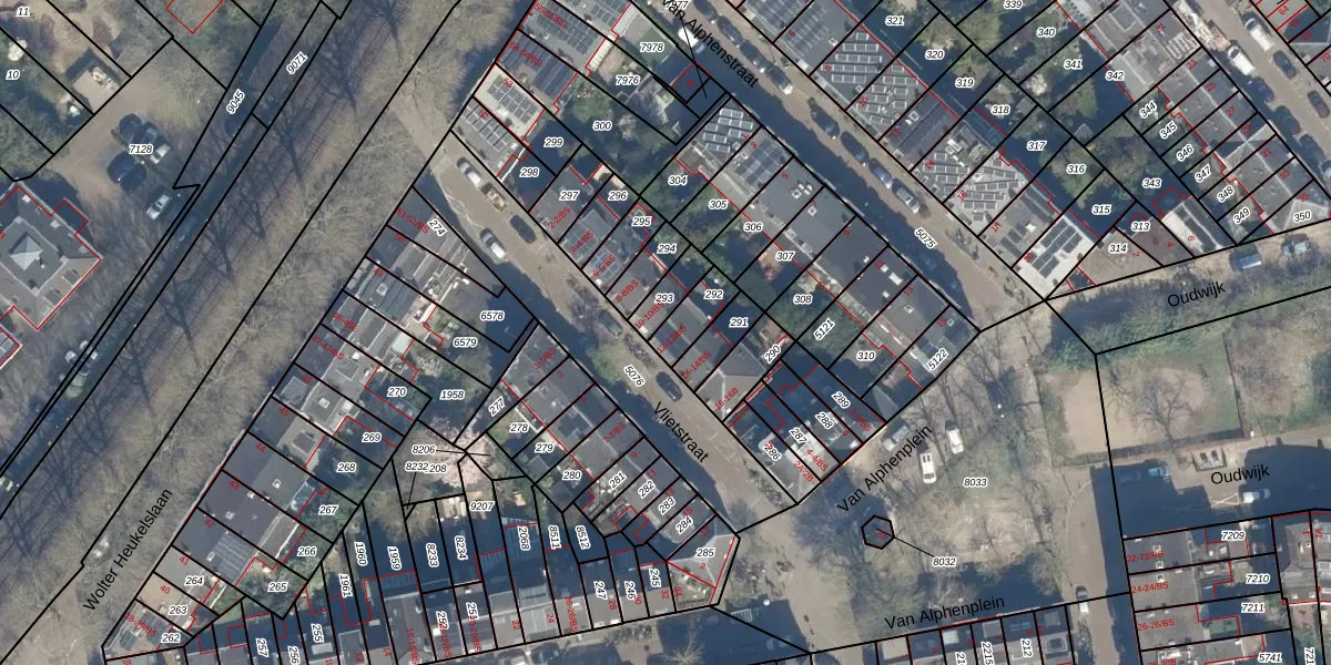 Het perceel waarop Vlietstraat 12 staat heeft een oppervlakte van 82 m². Dit is een klein perceel. De perceeloppervlakte wordt geregistreerd door het Kadaster. Gedetailleerde informatie over de maten van dit perceel kunt u vinden in het rapport Kadastrale kaart met maatvoering van Vlietstraat 12.