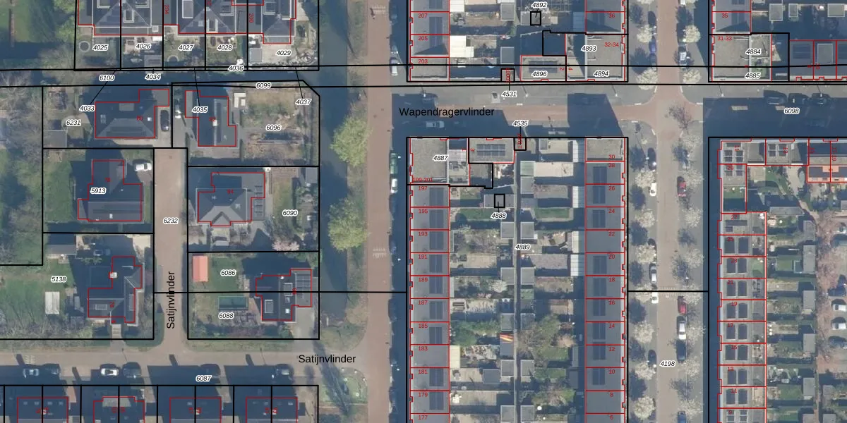 Het perceel waarop Vlindersingel 195 staat heeft een oppervlakte van 4173 m². Dit is een zeer groot perceel. De perceeloppervlakte wordt geregistreerd door het Kadaster. Gedetailleerde informatie over de maten van dit perceel kunt u vinden in het rapport Kadastrale kaart met maatvoering van Vlindersingel 195.