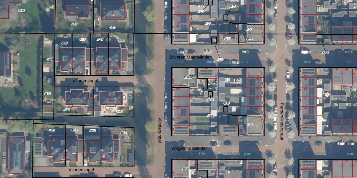 Vlindersingel 225 is gelegen op kadastraal perceel UTT00V4901. Deze kadastrale aanduiding is uniek en wordt gebruikt door het Kadaster om eigendomsrechten en andere zakelijke rechten vast te leggen. Het perceel maakt onderdeel uit van de kadastrale gemeente Utrecht.