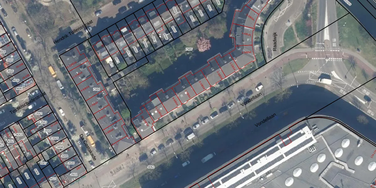 Vondellaan 7-BSA is gelegen op kadastraal perceel CTR00D7985. Deze kadastrale aanduiding is uniek en wordt gebruikt door het Kadaster om eigendomsrechten en andere zakelijke rechten vast te leggen. Het perceel maakt onderdeel uit van de kadastrale gemeente Catharijne.