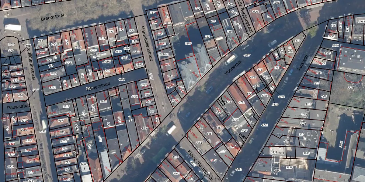 Voorstraat 34-BS is gelegen op kadastraal perceel UTT00A3800. Deze kadastrale aanduiding is uniek en wordt gebruikt door het Kadaster om eigendomsrechten en andere zakelijke rechten vast te leggen. Het perceel maakt onderdeel uit van de kadastrale gemeente Utrecht.