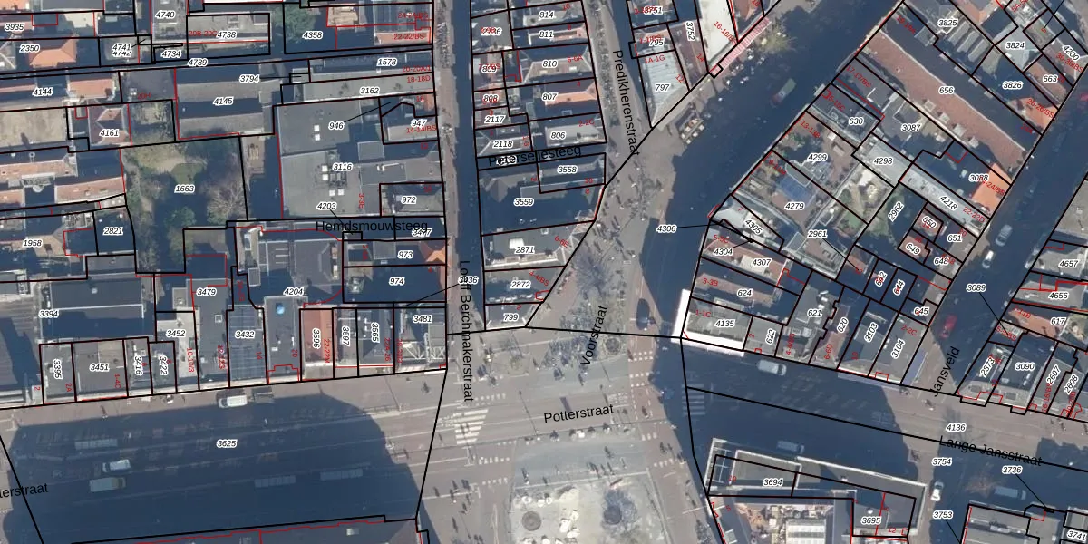 Voorstraat 4 is gelegen op kadastraal perceel UTT00A2872. Deze kadastrale aanduiding is uniek en wordt gebruikt door het Kadaster om eigendomsrechten en andere zakelijke rechten vast te leggen. Het perceel maakt onderdeel uit van de kadastrale gemeente Utrecht.