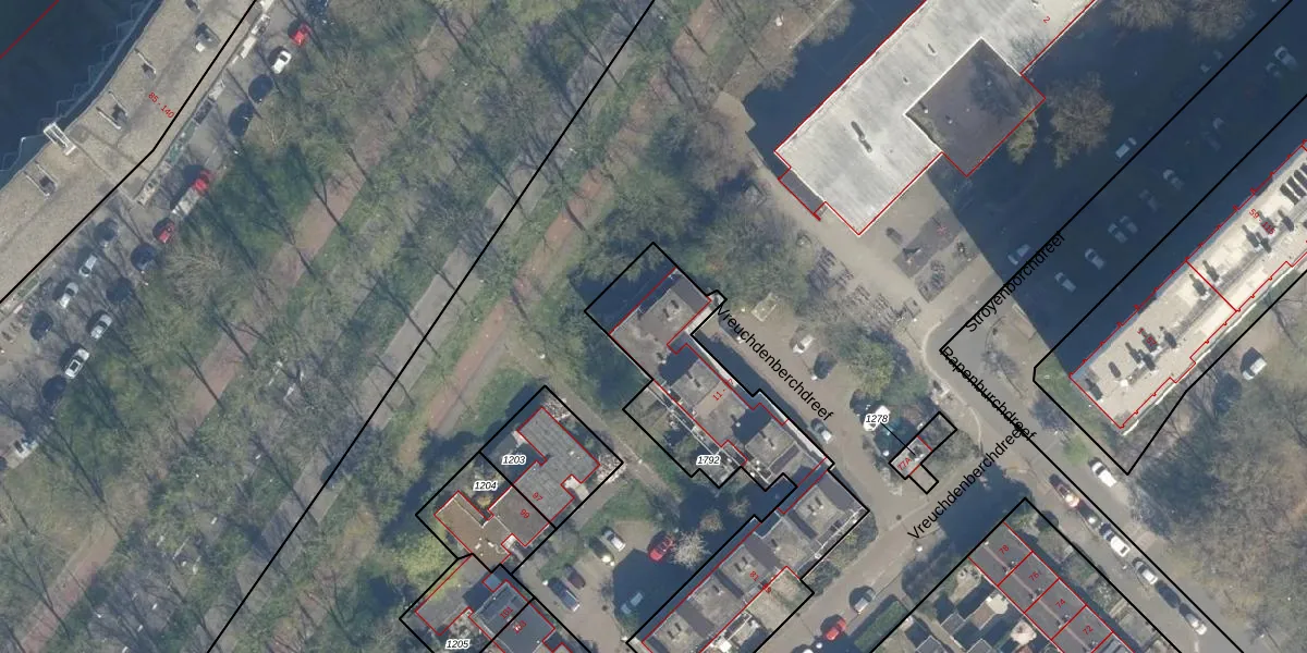 Vreuchdenberchdreef 13 is gelegen op kadastraal perceel UTT00H1792. Deze kadastrale aanduiding is uniek en wordt gebruikt door het Kadaster om eigendomsrechten en andere zakelijke rechten vast te leggen. Het perceel maakt onderdeel uit van de kadastrale gemeente Utrecht.
