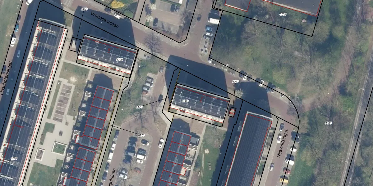 Vronesteinlaan 43 is gelegen op kadastraal perceel UTT00P6202. Deze kadastrale aanduiding is uniek en wordt gebruikt door het Kadaster om eigendomsrechten en andere zakelijke rechten vast te leggen. Het perceel maakt onderdeel uit van de kadastrale gemeente Utrecht.
