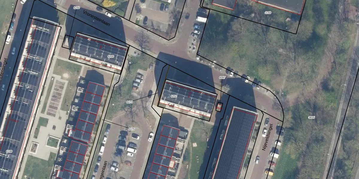 Vronesteinlaan 53 is gelegen op kadastraal perceel UTT00P6202. Deze kadastrale aanduiding is uniek en wordt gebruikt door het Kadaster om eigendomsrechten en andere zakelijke rechten vast te leggen. Het perceel maakt onderdeel uit van de kadastrale gemeente Utrecht.