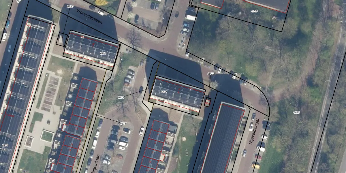 Vronesteinlaan 59 is gelegen op kadastraal perceel UTT00P6202. Deze kadastrale aanduiding is uniek en wordt gebruikt door het Kadaster om eigendomsrechten en andere zakelijke rechten vast te leggen. Het perceel maakt onderdeel uit van de kadastrale gemeente Utrecht.