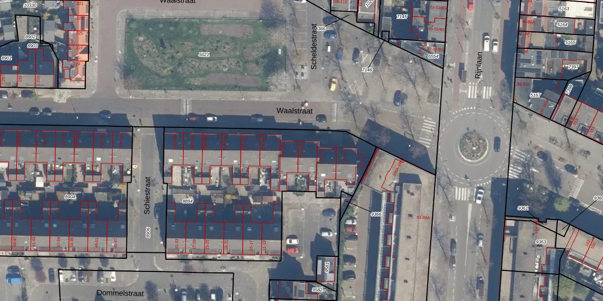 Het perceel waarop Waalstraat 178 staat heeft een oppervlakte van 2270 m². Dit is een zeer groot perceel. De perceeloppervlakte wordt geregistreerd door het Kadaster. Gedetailleerde informatie over de maten van dit perceel kunt u vinden in het rapport Kadastrale kaart met maatvoering van Waalstraat 178.