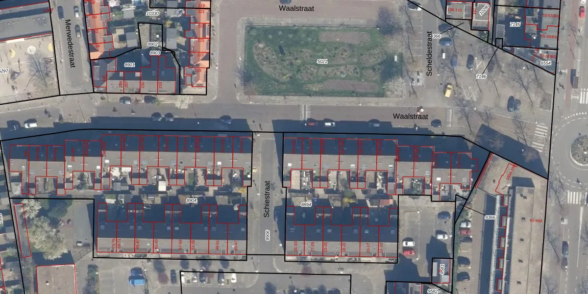 Het perceel waarop Waalstraat 206 staat heeft een oppervlakte van 2270 m². Dit is een zeer groot perceel. De perceeloppervlakte wordt geregistreerd door het Kadaster. Gedetailleerde informatie over de maten van dit perceel kunt u vinden in het rapport Kadastrale kaart met maatvoering van Waalstraat 206.