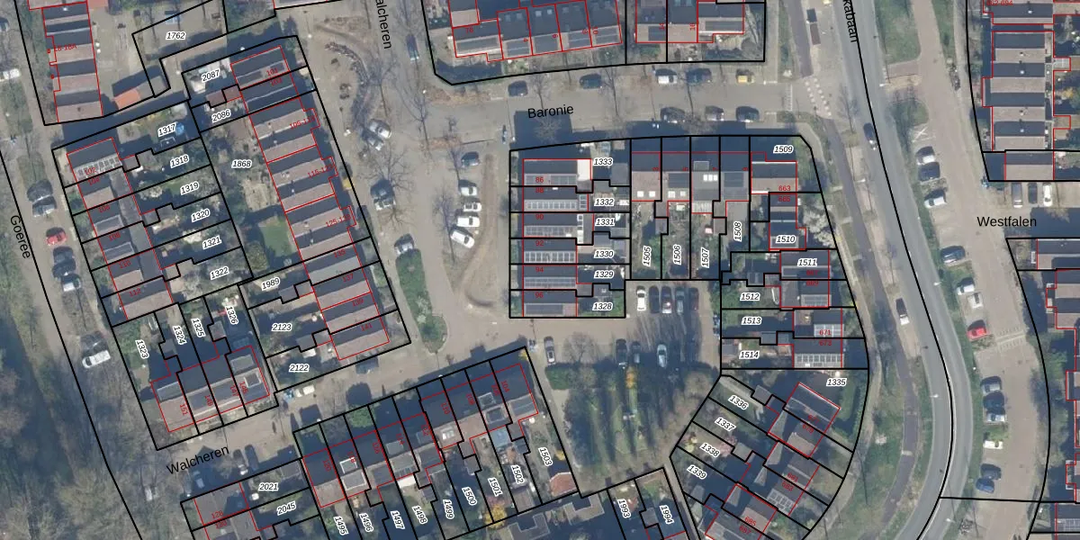 Gebruik de zoekbalk of klik op een perceel voor informatie over de adressen binnen dit perceel.