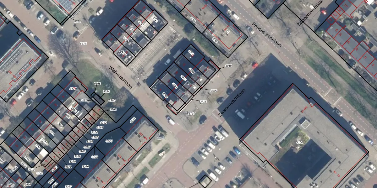 Het perceel waarop Wallesteinlaan 3 staat heeft een oppervlakte van 114 m². Dit is een middelgroot perceel. De perceeloppervlakte wordt geregistreerd door het Kadaster. Gedetailleerde informatie over de maten van dit perceel kunt u vinden in het rapport Kadastrale kaart met maatvoering van Wallesteinlaan 3.