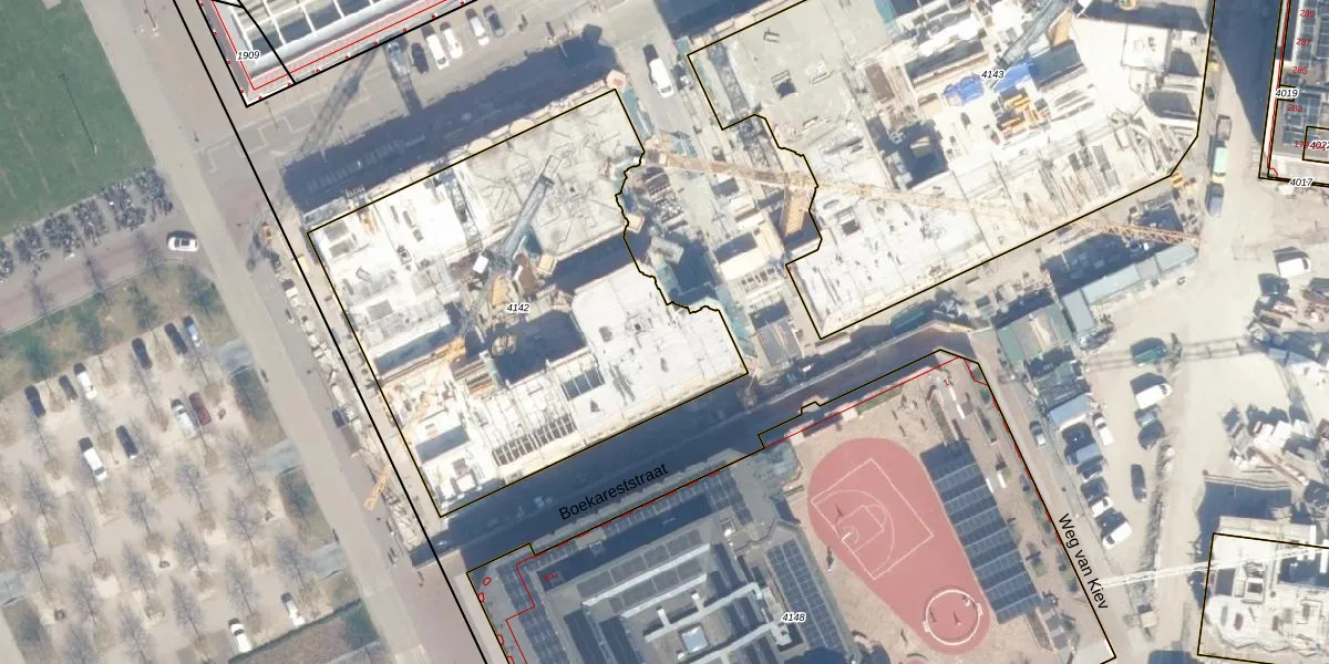 Het perceel waarop Weg van Kiev 54 staat heeft een oppervlakte van 2249 m². Dit is een zeer groot perceel. De perceeloppervlakte wordt geregistreerd door het Kadaster. Gedetailleerde informatie over de maten van dit perceel kunt u vinden in het rapport Kadastrale kaart met maatvoering van Weg van Kiev 54.