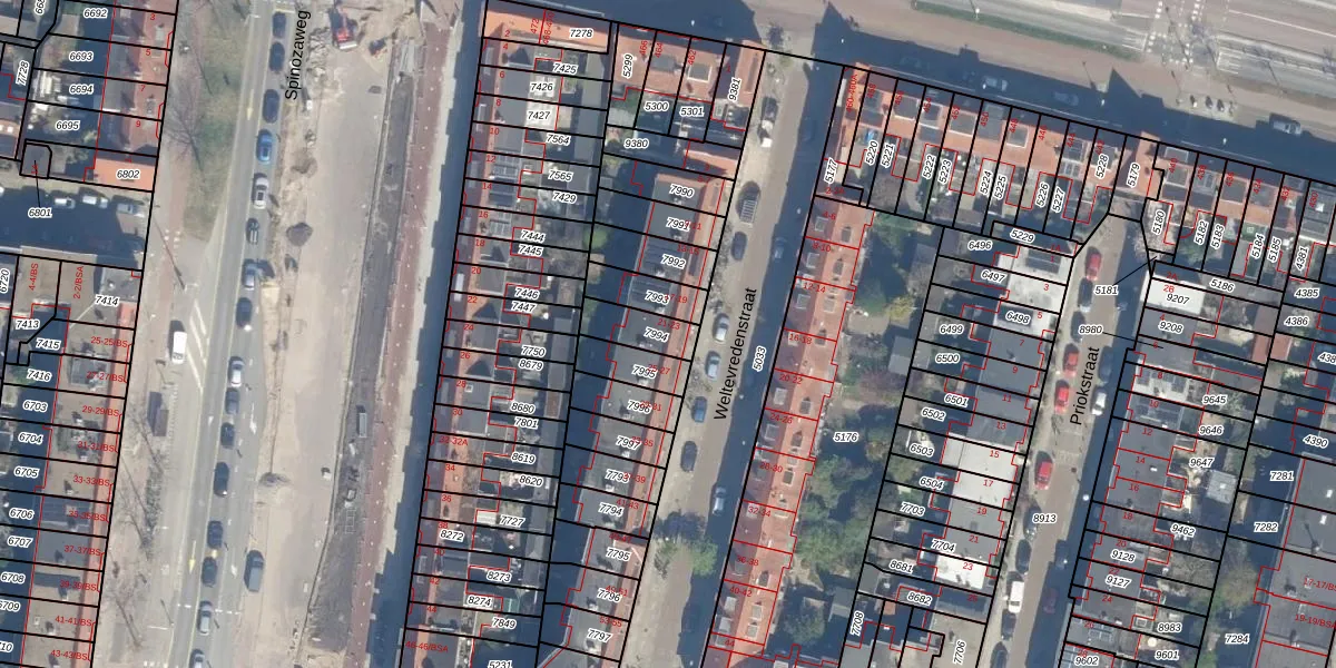 Het perceel waarop Weltevredenstraat 23 staat heeft een oppervlakte van 96 m². Dit is een klein perceel. De perceeloppervlakte wordt geregistreerd door het Kadaster. Gedetailleerde informatie over de maten van dit perceel kunt u vinden in het rapport Kadastrale kaart met maatvoering van Weltevredenstraat 23.