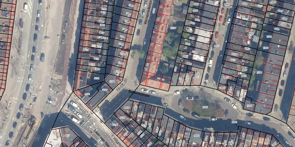 Weltevredenstraat 44 is gelegen op kadastraal perceel CTR00C5176. Deze kadastrale aanduiding is uniek en wordt gebruikt door het Kadaster om eigendomsrechten en andere zakelijke rechten vast te leggen. Het perceel maakt onderdeel uit van de kadastrale gemeente Catharijne.