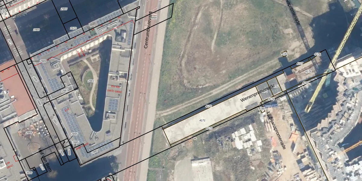 Het perceel waarop Wenenpromenade 155 staat heeft een oppervlakte van 32,9 ha. Dit is een zeer groot perceel. De perceeloppervlakte wordt geregistreerd door het Kadaster. Gedetailleerde informatie over de maten van dit perceel kunt u vinden in het rapport Kadastrale kaart met maatvoering van Wenenpromenade 155.