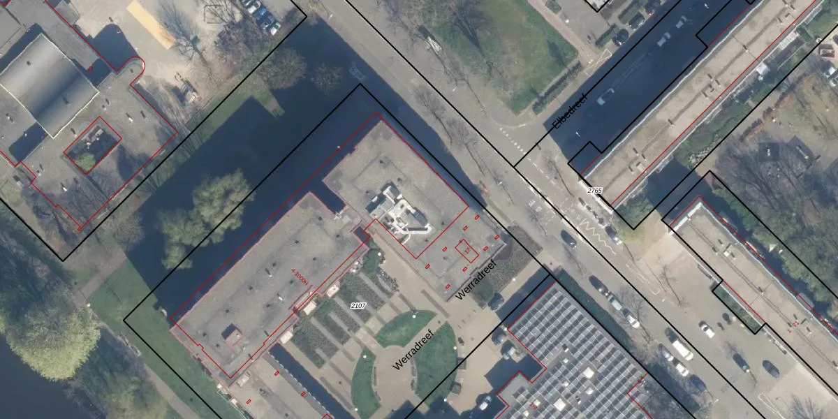 Het perceel waarop Werradreef 129 staat heeft een oppervlakte van 5450 m². Dit is een zeer groot perceel. De perceeloppervlakte wordt geregistreerd door het Kadaster. Gedetailleerde informatie over de maten van dit perceel kunt u vinden in het rapport Kadastrale kaart met maatvoering van Werradreef 129.