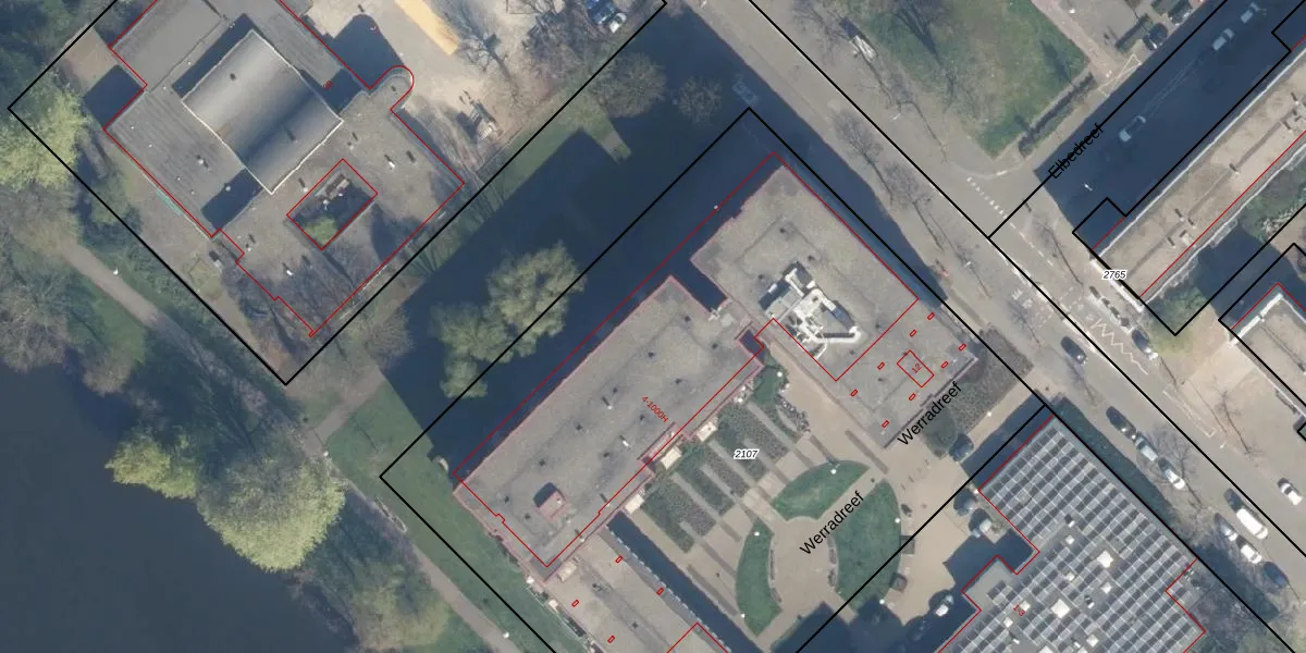 Het perceel waarop Werradreef 67 staat heeft een oppervlakte van 5450 m². Dit is een zeer groot perceel. De perceeloppervlakte wordt geregistreerd door het Kadaster. Gedetailleerde informatie over de maten van dit perceel kunt u vinden in het rapport Kadastrale kaart met maatvoering van Werradreef 67.