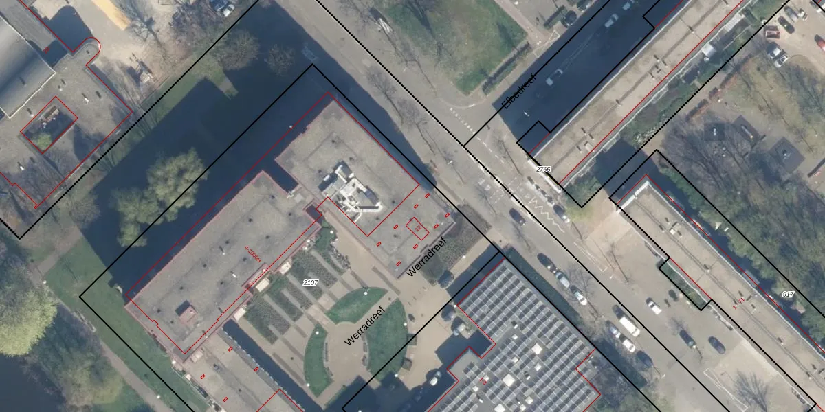 Het perceel waarop Werradreef 95 staat heeft een oppervlakte van 5450 m². Dit is een zeer groot perceel. De perceeloppervlakte wordt geregistreerd door het Kadaster. Gedetailleerde informatie over de maten van dit perceel kunt u vinden in het rapport Kadastrale kaart met maatvoering van Werradreef 95.