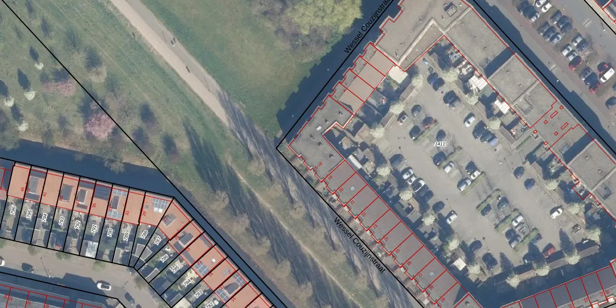 Wessel Couzijnstraat 13 is gelegen op kadastraal perceel CTR00F1411. Deze kadastrale aanduiding is uniek en wordt gebruikt door het Kadaster om eigendomsrechten en andere zakelijke rechten vast te leggen. Het perceel maakt onderdeel uit van de kadastrale gemeente Catharijne.