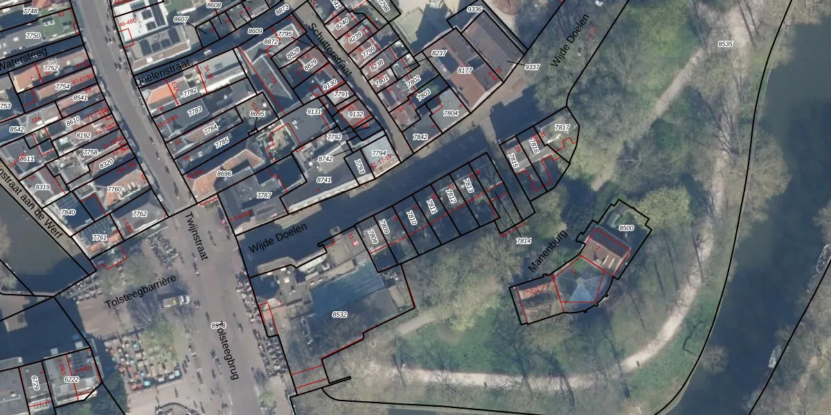 Het perceel waarop Wijde Doelen 17 staat heeft een oppervlakte van 62 m². Dit is een klein perceel. De perceeloppervlakte wordt geregistreerd door het Kadaster. Gedetailleerde informatie over de maten van dit perceel kunt u vinden in het rapport Kadastrale kaart met maatvoering van Wijde Doelen 17.