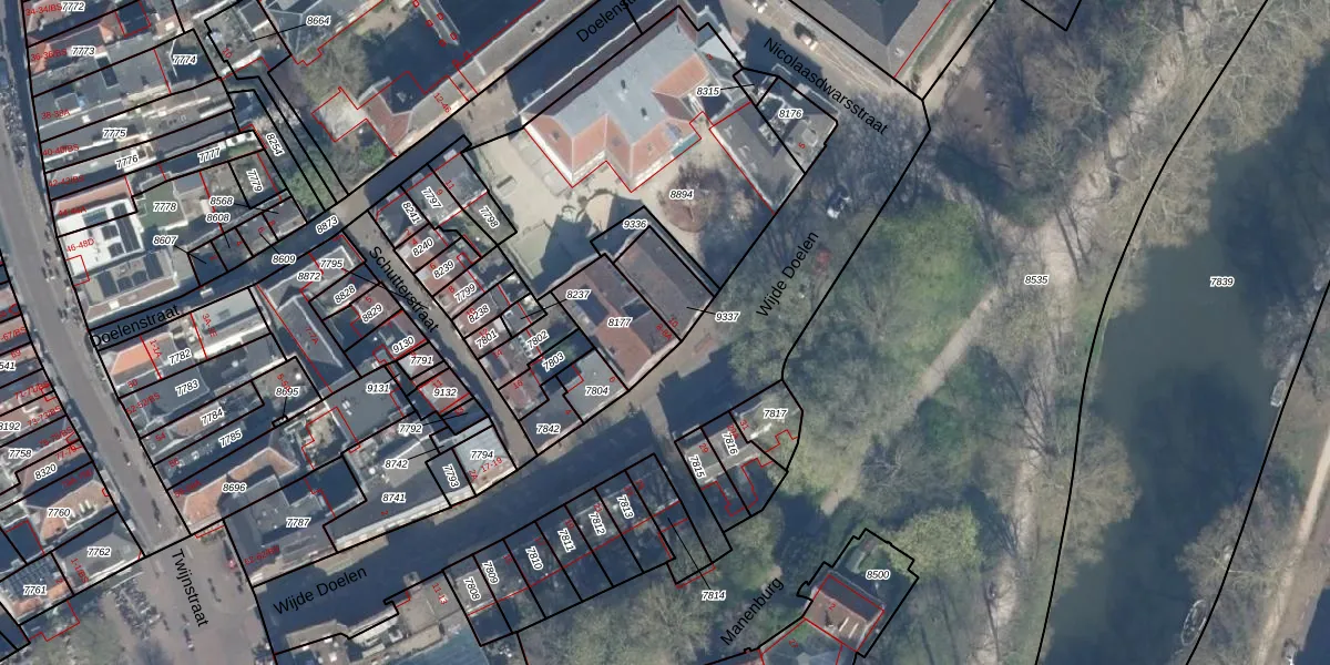 Wijde Doelen 8-A is gelegen op kadastraal perceel UTT00C8177. Deze kadastrale aanduiding is uniek en wordt gebruikt door het Kadaster om eigendomsrechten en andere zakelijke rechten vast te leggen. Het perceel maakt onderdeel uit van de kadastrale gemeente Utrecht.