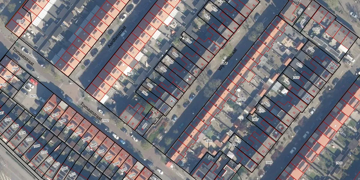 Het perceel waarop Wijnbesstraat 10 staat heeft een oppervlakte van 3265 m². Dit is een zeer groot perceel. De perceeloppervlakte wordt geregistreerd door het Kadaster. Gedetailleerde informatie over de maten van dit perceel kunt u vinden in het rapport Kadastrale kaart met maatvoering van Wijnbesstraat 10.