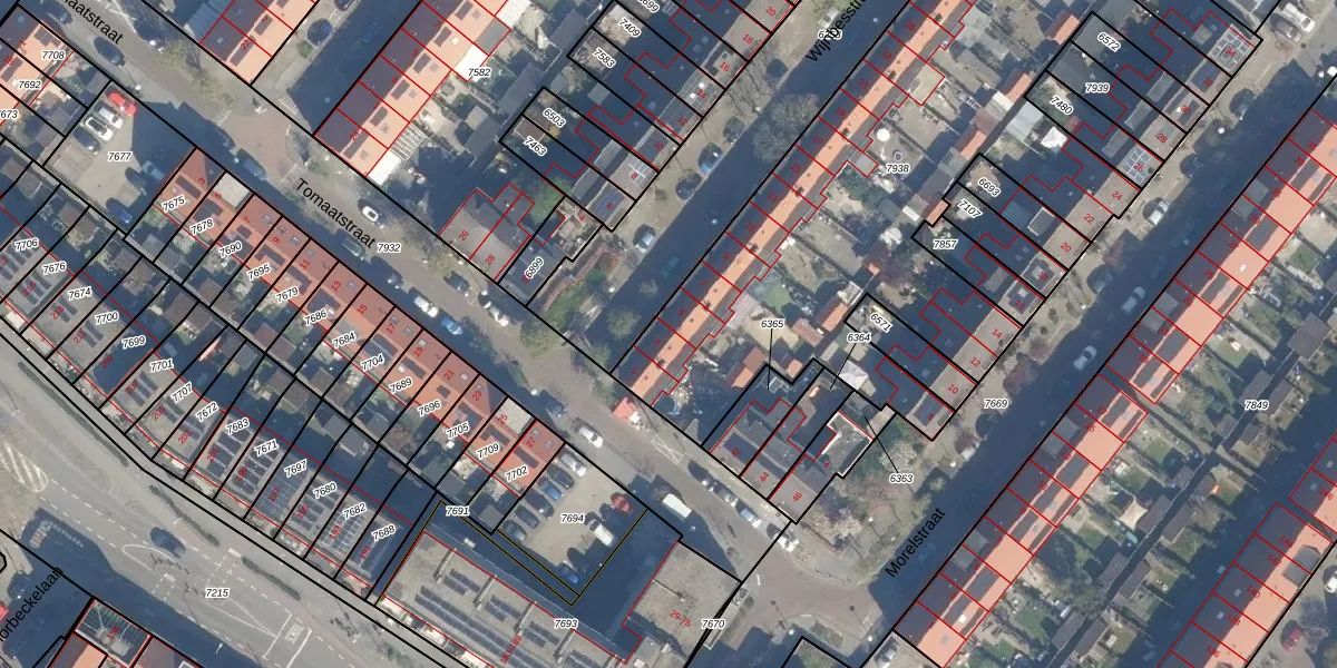 Het perceel waarop Wijnbesstraat 3 staat heeft een oppervlakte van 2964 m². Dit is een zeer groot perceel. De perceeloppervlakte wordt geregistreerd door het Kadaster. Gedetailleerde informatie over de maten van dit perceel kunt u vinden in het rapport Kadastrale kaart met maatvoering van Wijnbesstraat 3.