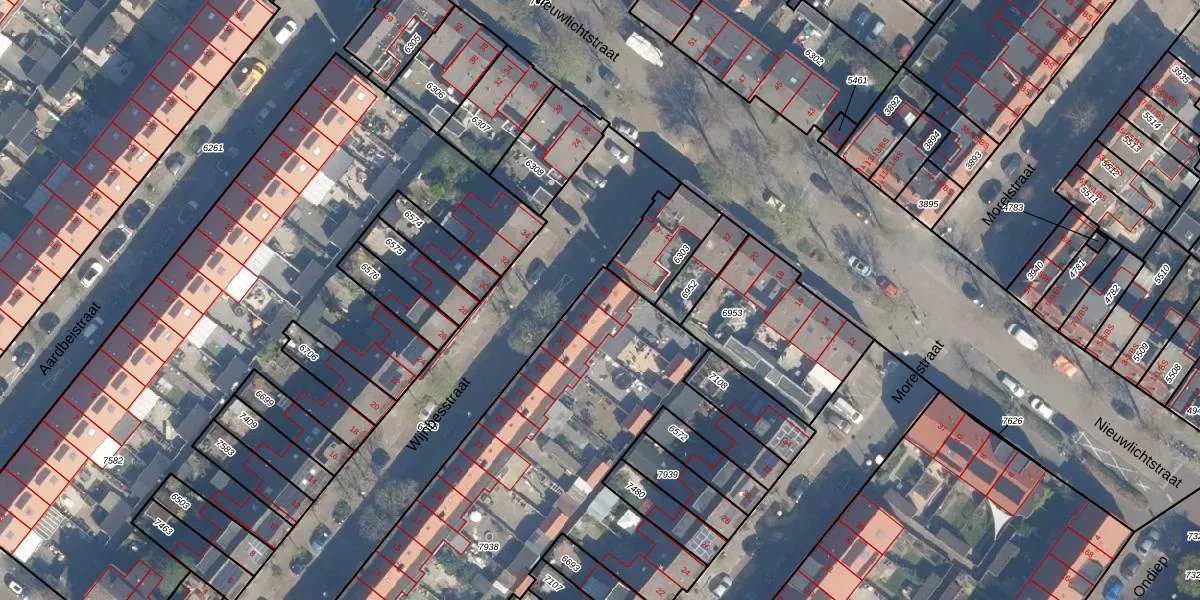 Het perceel waarop Wijnbesstraat 35 staat heeft een oppervlakte van 2964 m². Dit is een zeer groot perceel. De perceeloppervlakte wordt geregistreerd door het Kadaster. Gedetailleerde informatie over de maten van dit perceel kunt u vinden in het rapport Kadastrale kaart met maatvoering van Wijnbesstraat 35.