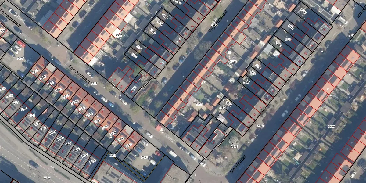 Het perceel waarop Wijnbesstraat 7 staat heeft een oppervlakte van 2964 m². Dit is een zeer groot perceel. De perceeloppervlakte wordt geregistreerd door het Kadaster. Gedetailleerde informatie over de maten van dit perceel kunt u vinden in het rapport Kadastrale kaart met maatvoering van Wijnbesstraat 7.