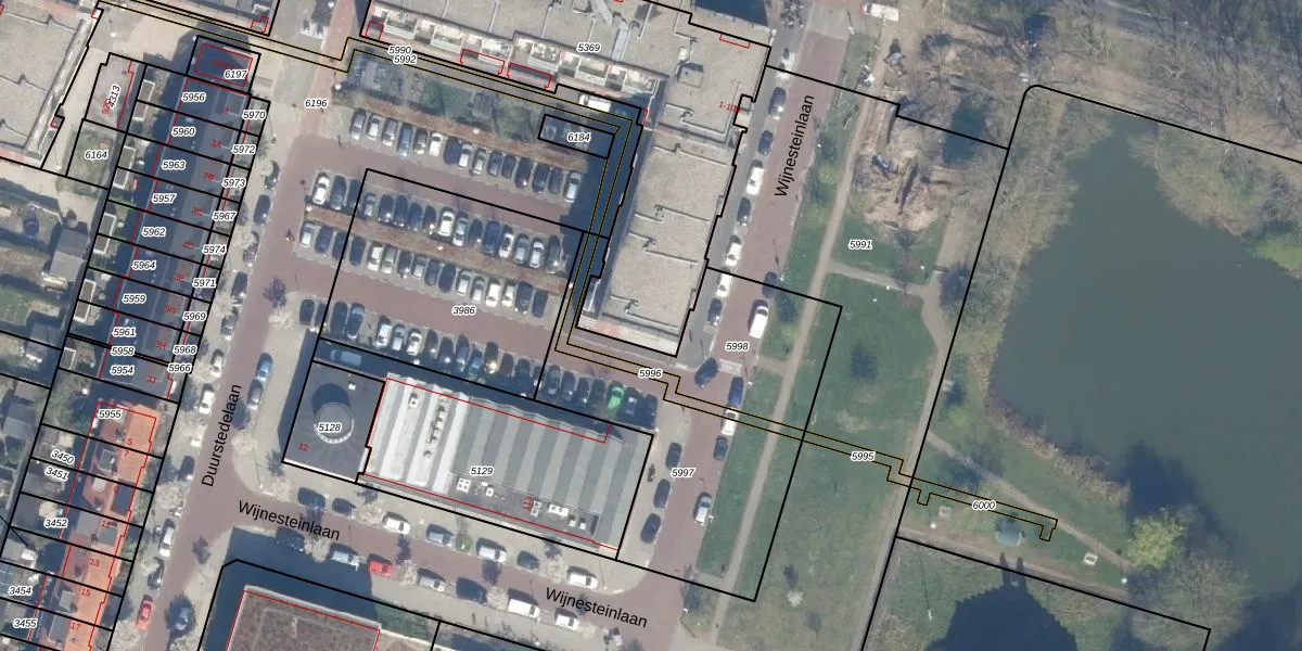 Het perceel waarop Wijnesteinlaan 21 staat heeft een oppervlakte van 1505 m². Dit is een zeer groot perceel. De perceeloppervlakte wordt geregistreerd door het Kadaster. Gedetailleerde informatie over de maten van dit perceel kunt u vinden in het rapport Kadastrale kaart met maatvoering van Wijnesteinlaan 21.