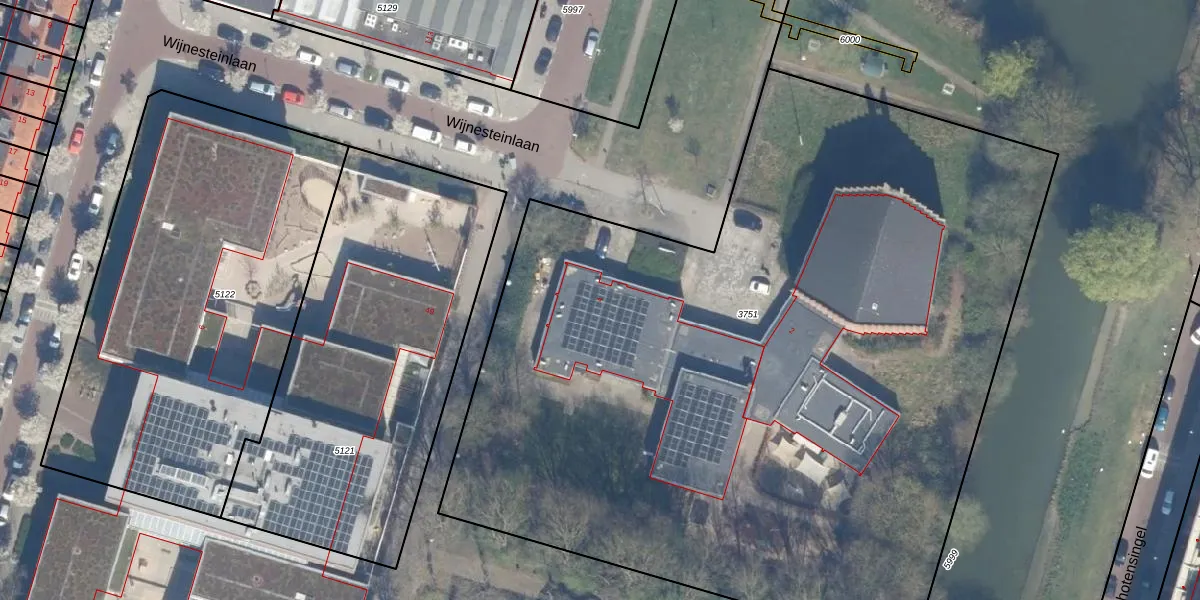 Het perceel waarop Wijnesteinlaan 4 staat heeft een oppervlakte van 6100 m². Dit is een zeer groot perceel. De perceeloppervlakte wordt geregistreerd door het Kadaster. Gedetailleerde informatie over de maten van dit perceel kunt u vinden in het rapport Kadastrale kaart met maatvoering van Wijnesteinlaan 4.