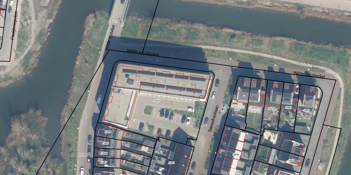 Het perceel waarop Wilde rucolavliet 13 staat heeft een oppervlakte van 2290 m². Dit is een zeer groot perceel. De perceeloppervlakte wordt geregistreerd door het Kadaster. Gedetailleerde informatie over de maten van dit perceel kunt u vinden in het rapport Kadastrale kaart met maatvoering van Wilde rucolavliet 13.