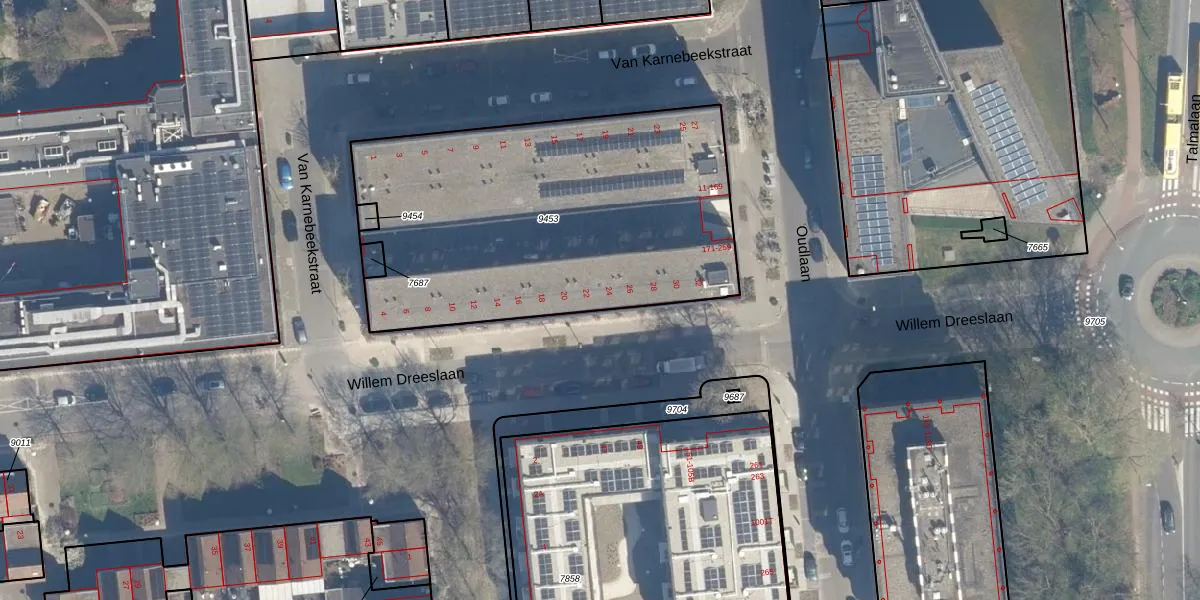 Het perceel waarop Willem Dreeslaan 24 staat heeft een oppervlakte van 1951 m². Dit is een zeer groot perceel. De perceeloppervlakte wordt geregistreerd door het Kadaster. Gedetailleerde informatie over de maten van dit perceel kunt u vinden in het rapport Kadastrale kaart met maatvoering van Willem Dreeslaan 24.