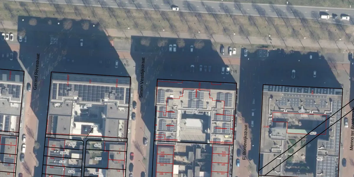 Het adres is gelegen op perceel 6419 in de sectie V en de kadastrale gemeente Utrecht. De kadastrale aanduiding is aldus UTT00-V-6419. De oppervlakte van het perceel is 1570 m². Dat is groter dan gemiddeld in Utrecht, waar de gemiddelde perceeloppervlakte op 1438,48 m² ligt. Het grootste perceel in de kadastrale gemeente is 90,1 ha. Het kleinste perceel heeft een oppervlakte van 0 m². Op het perceel liggen in totaal 51 adressen. In de Basisregistratie Kadaster (BRK) werden de grenzen van het perceel geregistreerd op 27-03-2023.
