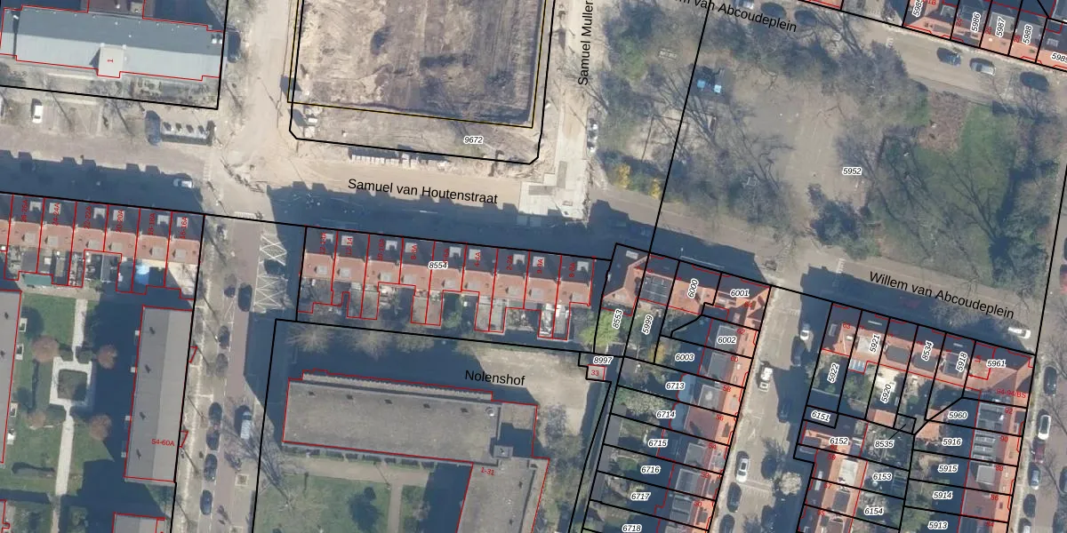 Het perceel waarop Willem van Abcoudeplein 9 staat heeft een oppervlakte van 1030 m². Dit is een zeer groot perceel. De perceeloppervlakte wordt geregistreerd door het Kadaster. Gedetailleerde informatie over de maten van dit perceel kunt u vinden in het rapport Kadastrale kaart met maatvoering van Willem van Abcoudeplein 9.