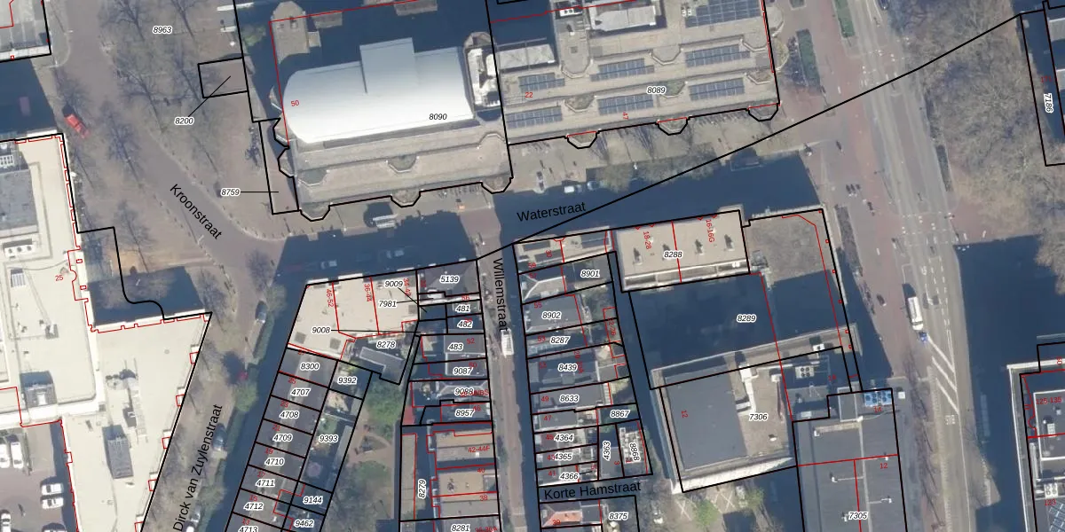 Het perceel waarop Willemstraat 59 staat heeft een oppervlakte van 375 m². Dit is een groot perceel. De perceeloppervlakte wordt geregistreerd door het Kadaster. Gedetailleerde informatie over de maten van dit perceel kunt u vinden in het rapport Kadastrale kaart met maatvoering van Willemstraat 59.