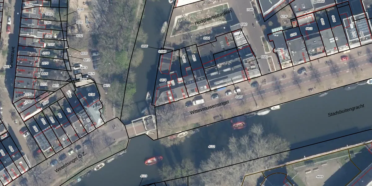Wittevrouwensingel 105 is gelegen op kadastraal perceel ASD40B6874. Deze kadastrale aanduiding is uniek en wordt gebruikt door het Kadaster om eigendomsrechten en andere zakelijke rechten vast te leggen. Het perceel maakt onderdeel uit van de kadastrale gemeente Abstede.