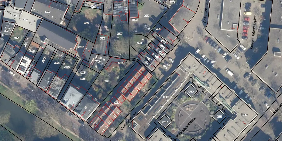 Het perceel waarop het adres ligt is ASD40-B-6504. De afkorting 'ASD40' staat voor kadastrale gemeente Abstede. De gemiddelde perceeloppervlakte in de kadastrale gemeente Abstede is 336,77 m². Dit perceel is met zijn 1100 m² dus groter dan gemiddeld. Het kleinste perceel in de kadastrale gemeente is 0 m² groot. De grootste perceeloppervlakte is 13,7 ha. Op het perceel zijn 17 adressen aanwezig. In de Basisregistratie Kadaster (BRK) werden de grenzen van het perceel geregistreerd op 11-12-2007.