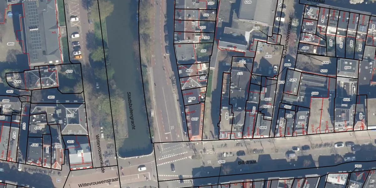 Wittevrouwensingel 45-BS is gelegen op kadastraal perceel ASD40B6036. Deze kadastrale aanduiding is uniek en wordt gebruikt door het Kadaster om eigendomsrechten en andere zakelijke rechten vast te leggen. Het perceel maakt onderdeel uit van de kadastrale gemeente Abstede.