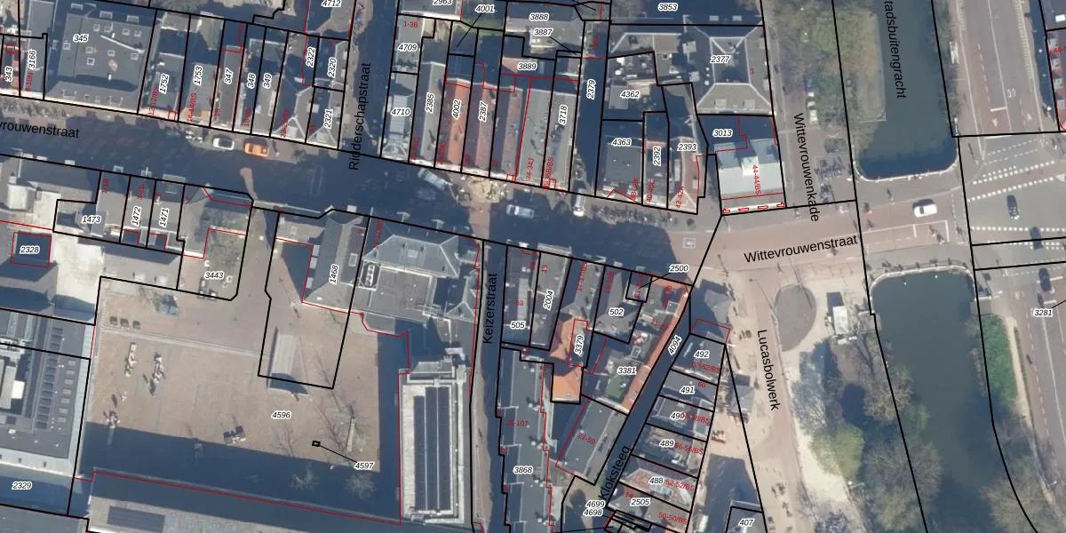 Wittevrouwenstraat 13 is gelegen op kadastraal perceel UTT00A505. Deze kadastrale aanduiding is uniek en wordt gebruikt door het Kadaster om eigendomsrechten en andere zakelijke rechten vast te leggen. Het perceel maakt onderdeel uit van de kadastrale gemeente Utrecht.